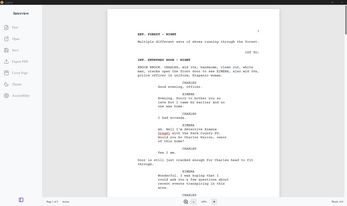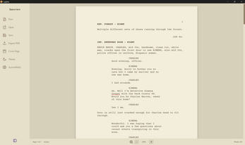 What features do you want? What don't you like about how it currently stands? This is my first piece of software and I am very open to any and all feedback. I was thinking about developing a Linux version next (Mac version if I can afford the $100 annual fee required). Followed by adding a feature on the side of the editor to quickly jump around to different scene headings with a click. But if there are more interesting features you all want then let me know!